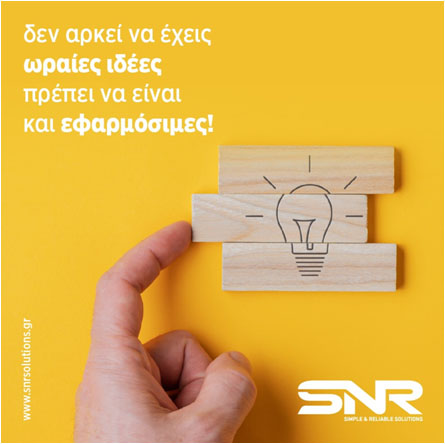 Κάθε έργο logistics, όσο και αν μοιάζει με κάποιο άλλο, είναι μοναδικό. Η μοναδικότητά του συνεπάγεται απαίτηση για σχεδιασμό από το μηδέν και όχι copypaste. Ο σχεδιασμός από το μηδέν απαιτεί προφανώς περισσότερο χρόνο, αλλά σε αναγκάζει πολλές φορές να σκεφτείς έξω από το κουτί για την υλοποίηση. Και μια outofthebox λύση, πολλές φορές είναι αυτή που ταιριάζει περισσότερο. Η SNR θα σας υποστηρίξει στη μεγιστοποίηση της απόδοσης των logistics σας, με λύσεις απλές, φρέσκες και πέρα από την πεπατημένη.